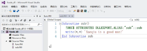!DEC$ ATTRIBUTES DLLEXPORT:"sub"::sub