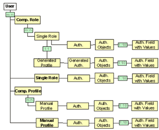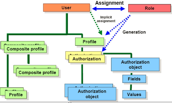 作为权限配置文件一部分的用户主记录中的条目。 权限由权限对象中权限字段的完整值或通用值组成。 该组合决定了用户可以使用哪些活动来访问某些数据。它们是从事务 PFCG(用于角色编辑的配置文件生成器)生成的。 它们也可以使用事务 SU03 显示。