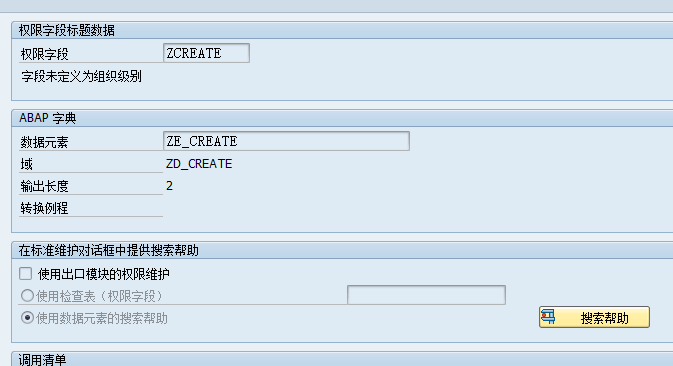 - SU20:创建权限字段(非必需,可用系统标准的,除非自定义)