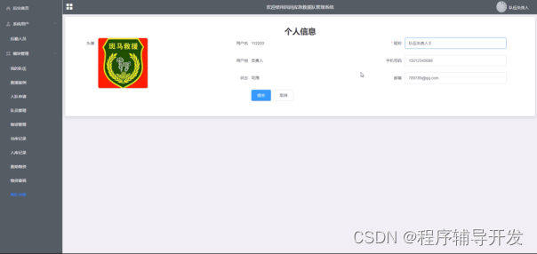 This civilian emergency rescue team management system adopts JAVA language, is based on the Springboot framework, and is developed and implemented using the MYSQL database. It is divided into four parts in terms of functionality: administrator, platform manager, responsible person, and team member. It meets the requirements for users to view team member information and material entry and exit records through the system; Administrators can also manage users, team members, materials, and fundraising through the system, providing services for the civilian emergency rescue team management system and meeting the needs of the civilian emergency rescue team management system.
