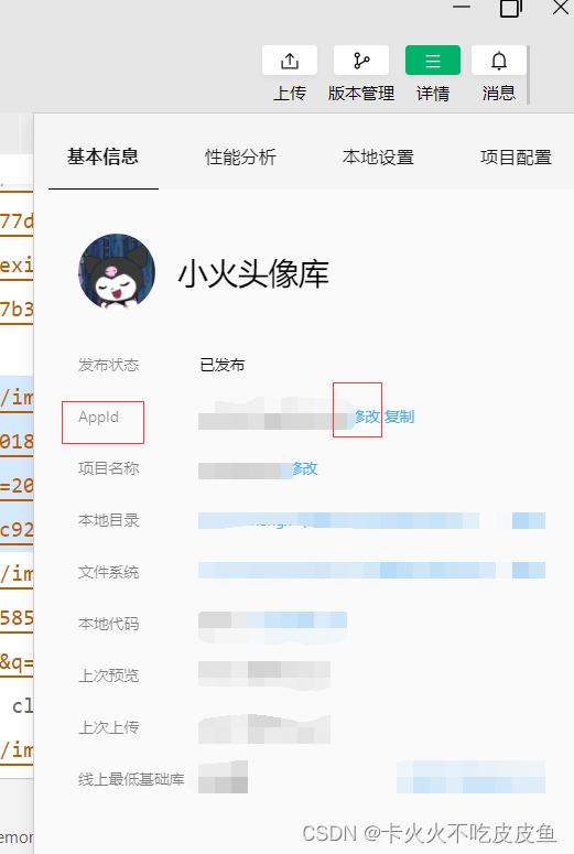3.打开“微信开发者工具”-“详情”页面,点击“修改”按钮。粘贴刚才在微信公众平台的AppId