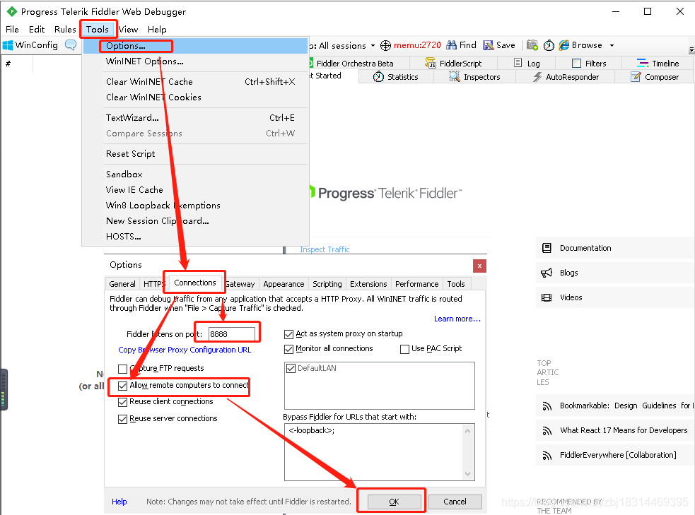 1、Fiddler配置代理