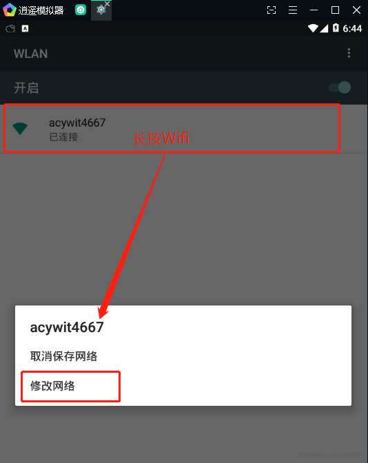 首先找到Wifi界面,进入到WiFi界面,长按已经连接的Wifi之后会出现 修改网络
