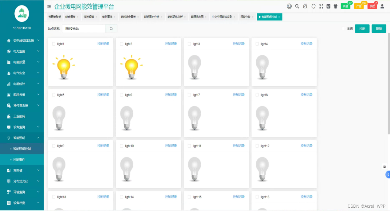(7)数据统计分析:加入智能表计后,具有(电流、电压、功率、功率因数、电能量)电量自动分析功能和亮灯率统计分析、报警统计分析、单回路电能量统计分析等功能。