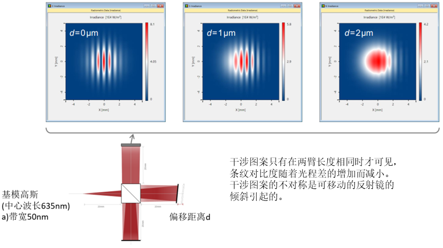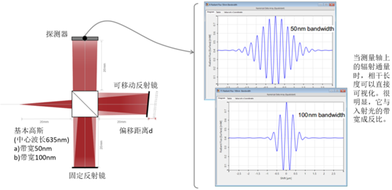 众所周知,在干涉仪中,条纹对比度可能取决于光源的相干性。例如,在配有一定带宽源的迈克尔逊干涉仪中,干涉条纹对比度随着两臂之间的光程差的增加而减小。通过测量可移动反射镜在不同位置的干涉图对比度,可以得出光源的相干长度。典型的傅立叶变换光谱学通常是基于这类光学装置。