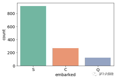 可以看到,登船地点总共包含三类数据,S、C 和 Q,他们出现的次数分别为 914、270 和 123。