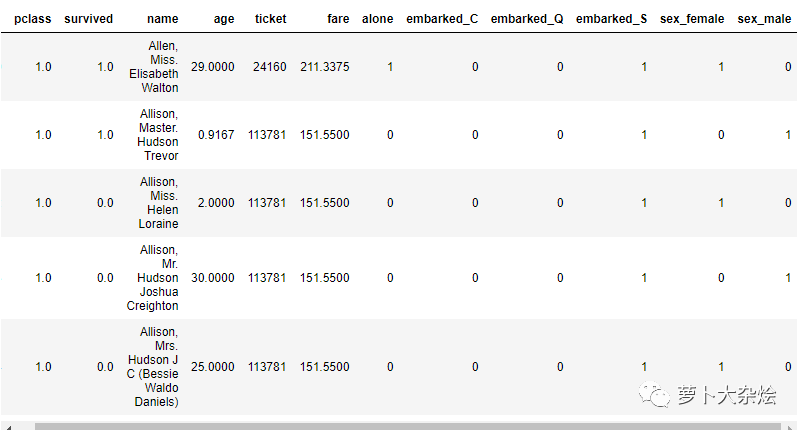 >>>pclass survived age fare alone embarked_C embarked_Q \