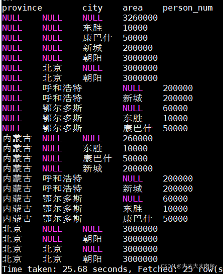 with rollup使用起来比grouping sets更为方便,但是并没有grouping sets灵活 ,并不能控制那些多维度