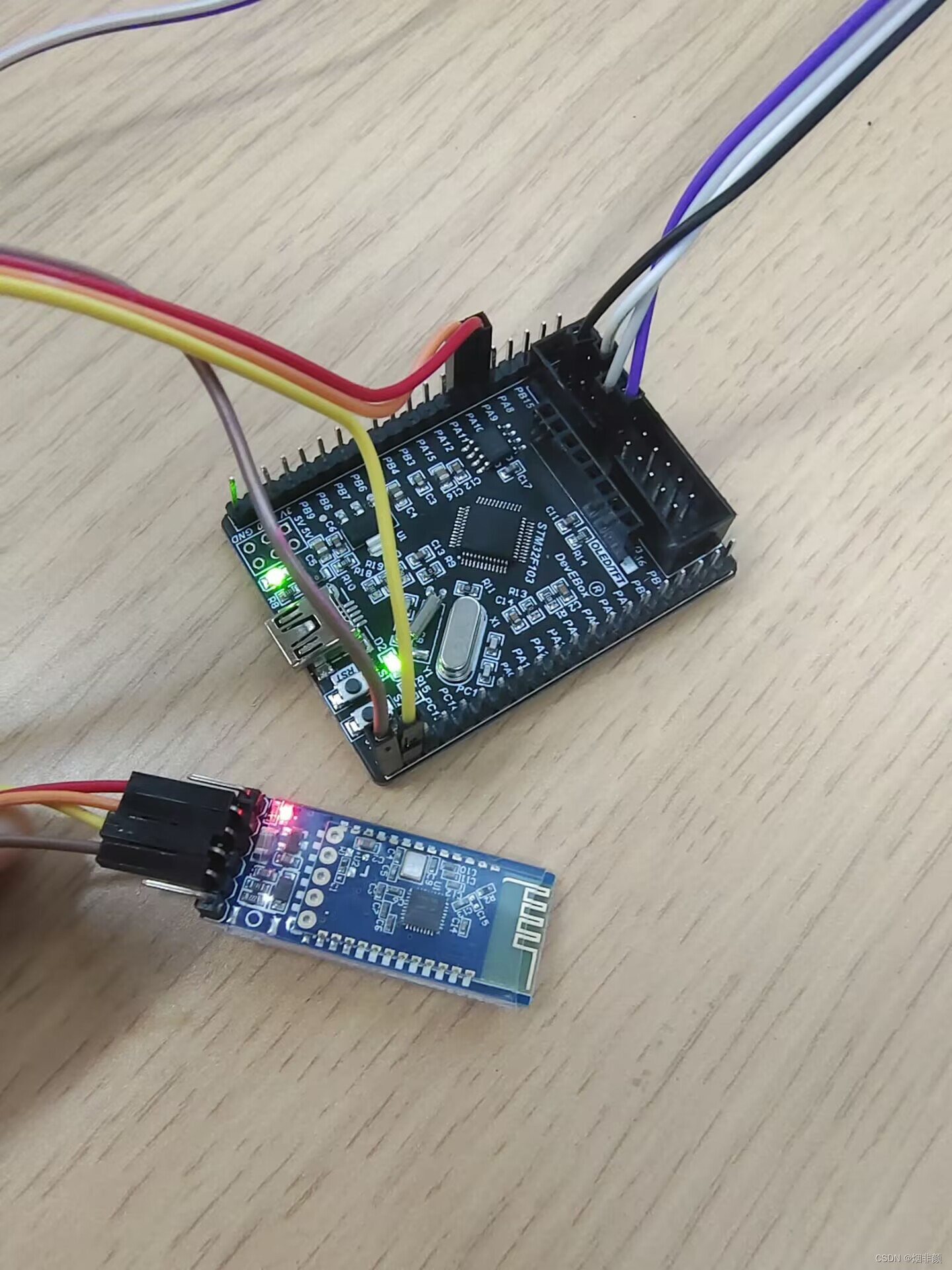 接线:VCC——3.3v GND——GND TXD——PA10(RXD) RXD——PA9(TXD)