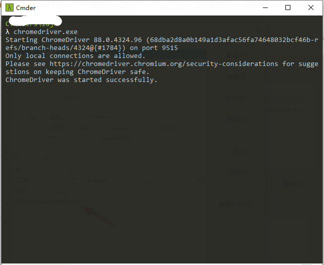 在dos窗口键入指令 chromedriver.exe,观察输出结果。