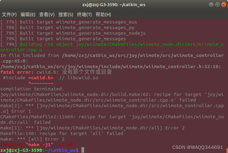 /home/zxj/catkin_ws/src/joy/wiimote/include/wiimote/wiimote_controller.h:52:10: fatal error: cwiid.h: 没有那个文件或目录 #include // libcwiid.so