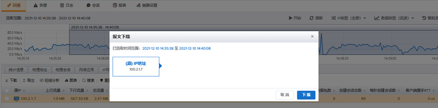 (3)根据告警日志中的时间、IP、端口等信息,关联告警报文并下载,完成取证。