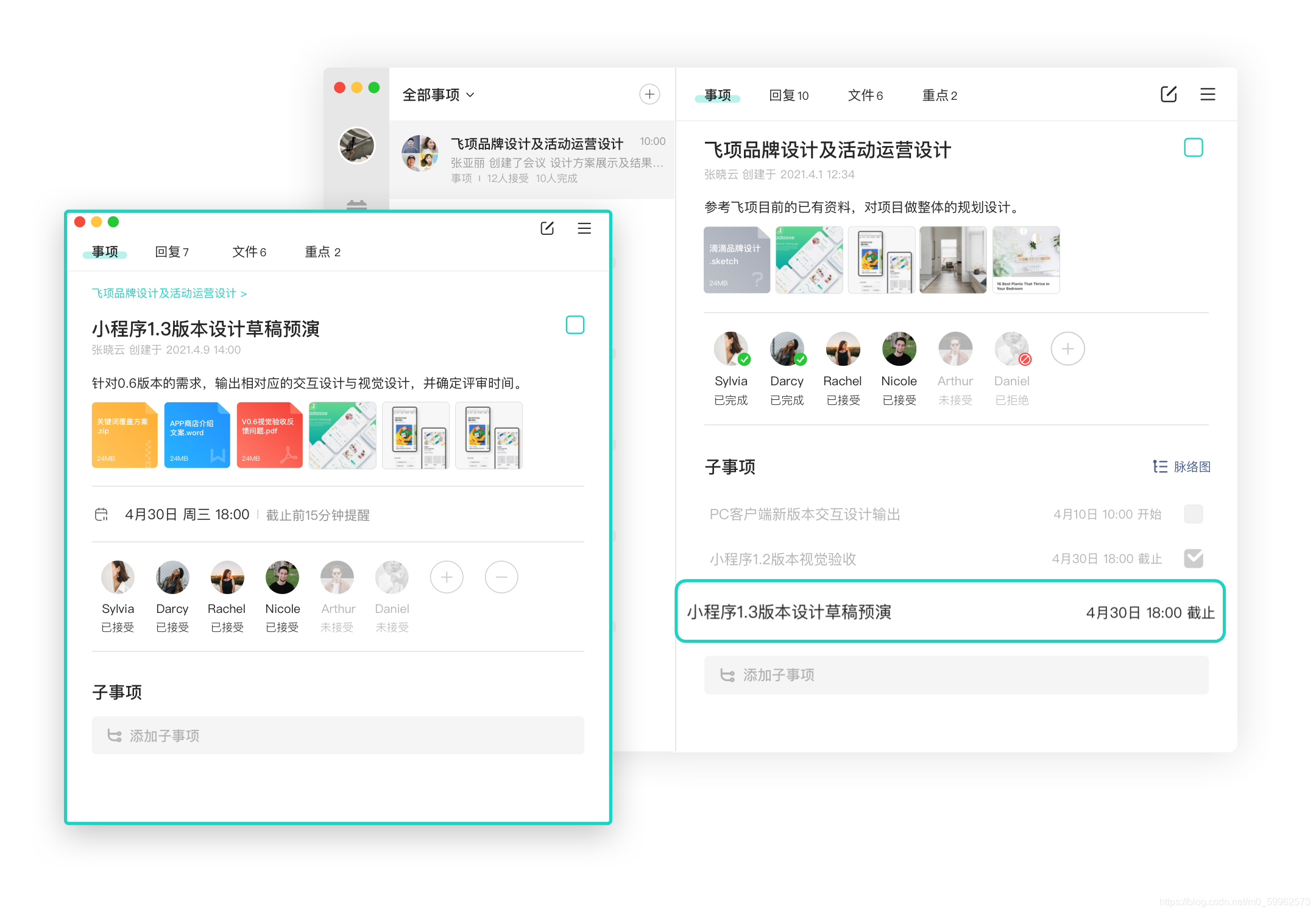 我们需要做的,就是利用SMART原则的具体性(Specific),即把相关任务的具体指标、标准要求在分派事项的背景信息里交待清楚,使得任务更加清晰,然后在邀请协作人里通过微信好友、飞项协作人等为他人派发事项。