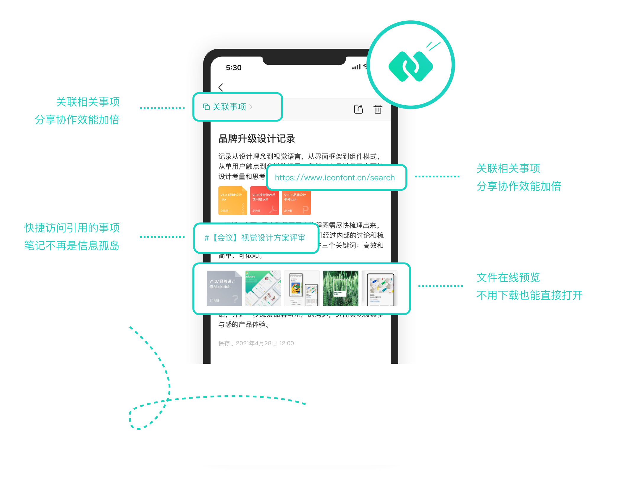 另一方面,飞项的笔记关联事项功能可以做复盘总结,这对于项目管理来说是相当有用的;即在飞项的笔记上,总结出未来同类项目可能犯的错误及可应用的优秀点,接着将该总结笔记关联相关事项,分享给协作成员。