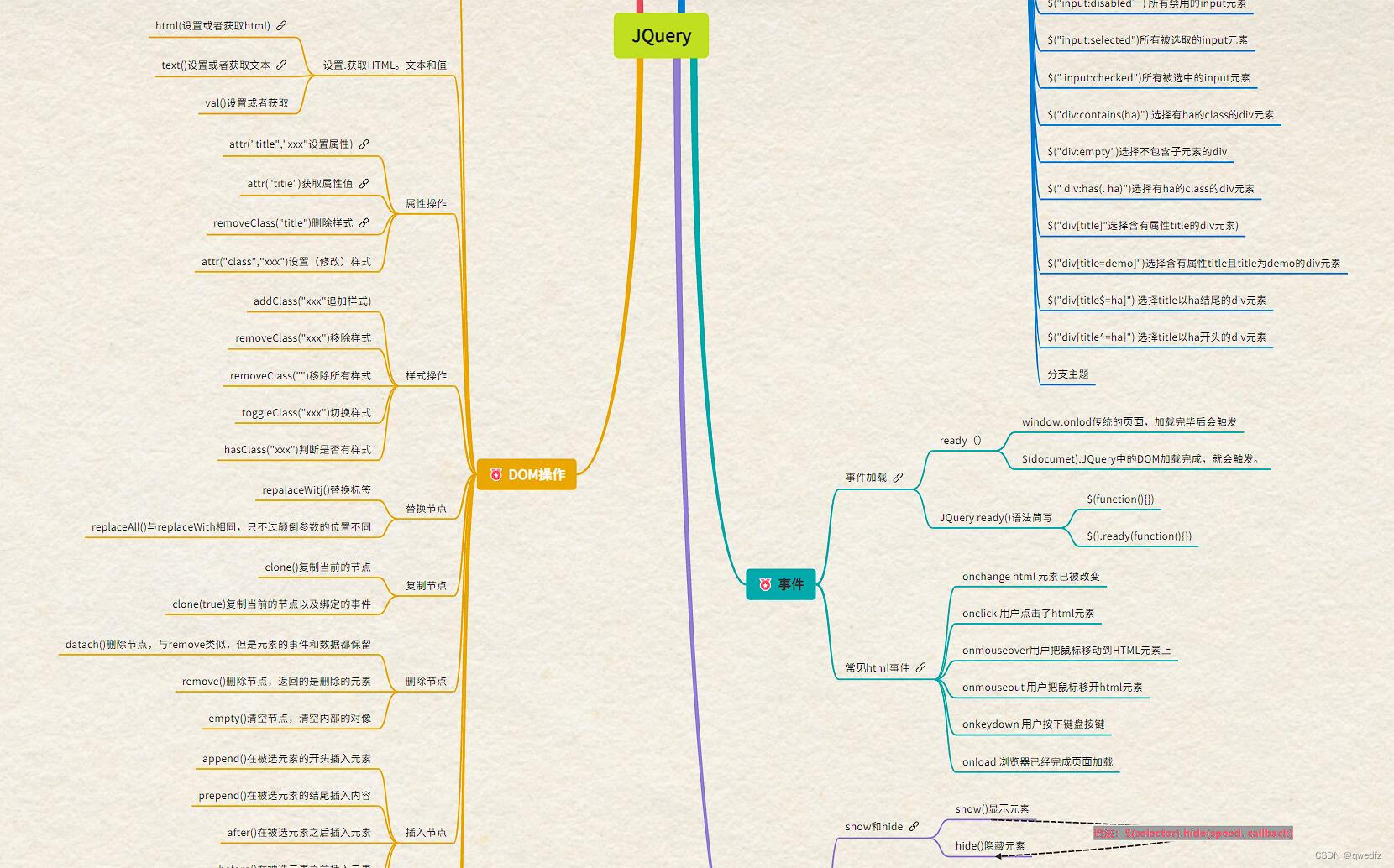 5.jQuery也是一个为事件处理特点设计的框架,提供了静态绑定事件和动态绑定事件,完善了事件的处理机制。