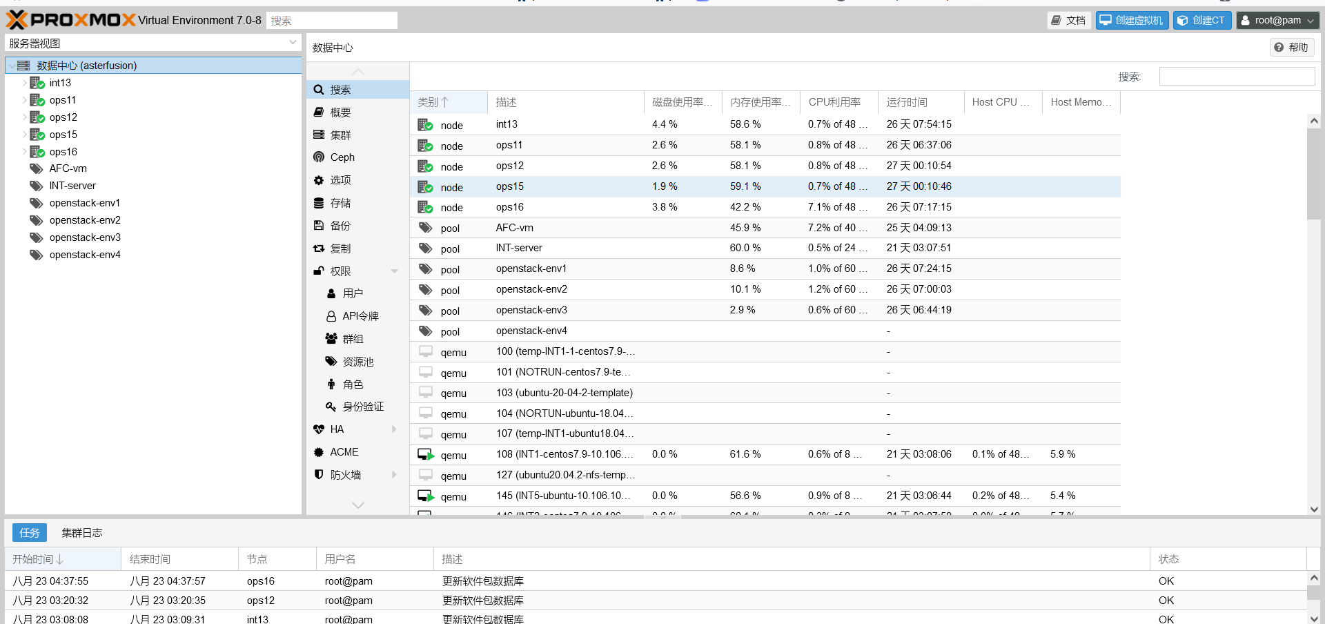 安装完成可登录系统,WEB UI界面登录 https:x.x.x.x:8006 , 可以使用linux系统账户和密码进行登录