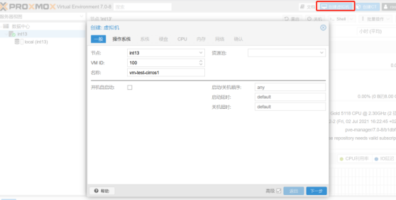 - 右上角“创建虚拟机”,选择节点,输入名称