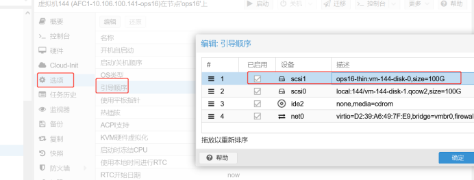 - 虚拟机找到新导入的硬盘(通常为vm-id-disk-0-1之类),并设置开机启动项为此硬盘。启动虚拟机即可完成