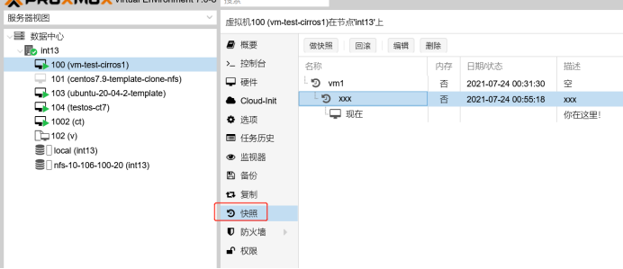 如果安装时虚拟机存在放dir目录里(local,nfs)。则只支持qcow2格式的虚拟机支持快照。