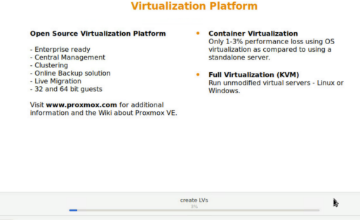 因为工作需要,需进行小组内部服务器虚拟机工作并维护(大约6台左右),因为公司使用ESXi需要付费,所以准备选择KVM。需要支持快速方便创建虚拟机,支持虚拟机嵌套虚拟化,支持虚拟机PCI直通(比如物理服务器的网卡需要独享于虚拟机内部),支持快照克隆等保护虚拟机的措施。于是调研分析后,决定使用PromoxVE系统。