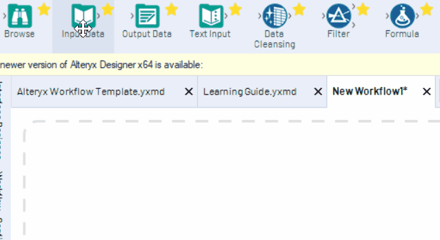 在他/她实际将一些工具拖入画布之前,您的同事不会意识到任何变化。图标将是Alteryx第一版中使用的原始图标。除非您启动Alteryx的新窗口,否则无法撤消此操作。