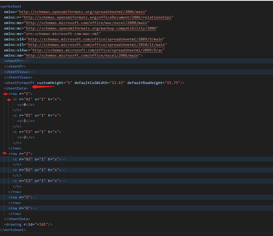 现在我们要获取sheet的内容了,我们先分析一下xml结构