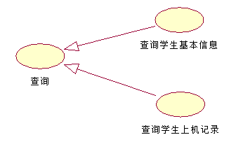 表示方法:带空心箭头的实线,箭头指向泛化(被继承)的用例,即父用例。(PS:泛化关系的箭头不是指向被泛化,而是指向被继承。泛化和继承是不同的方向。泛化是从下到上的抽象过程,继承是从上到下,从一般到特殊的过程。)