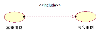 定义:其中一个用例(基础用例)的行为包含了另一个用例(包含用例)的行为。基础用例可以看到包含用例,并依赖于包含用例的执行结果。但是二者不能访问对方的属性。