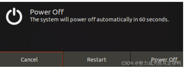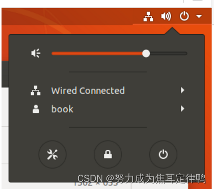 和我们使用 Windows 系统一样,当我们不使用 Ubuntu 系统以后就需要将其 关机或者睡眠,千万不要通过直接退出 VMware 软件来关机!!一般的步骤是: 第1步 在虚拟机系统中关闭系统或在 VMware 软件上挂起虚拟机 第2步 关闭 VMware 软件 第3步 windows 系统 Ubuntu 的关机与重启很简单,在主界面,点击右上角的图标,然后选项对 应的选项即可,如图