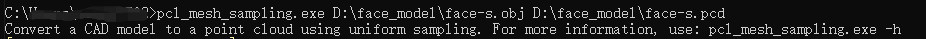 cmd打开命令行程序,执行以下命令即可将obj文件转成pcd文件: