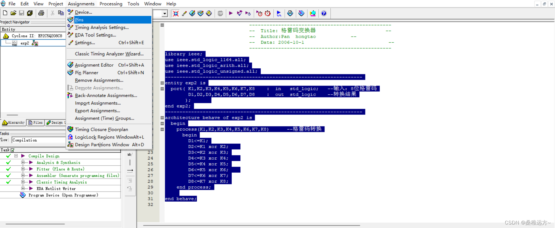 entity exp2 isport( K1,K2,K3,K4,K5,K6,K7,K8 : in std_logic; --输入:8位格雷码D1,D2,D3,D4,D5,D6,D7,D8 : out std_logic --转换结果);