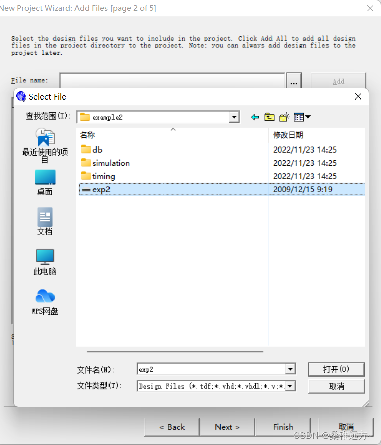 (3)导入代码文件,如果事先有,就直接导入,没有也可以在创建完成之后新建一个VHDL file,将代码写入,这里我就直接导入,没导入,就直接下一步,后面我会给出新建方式