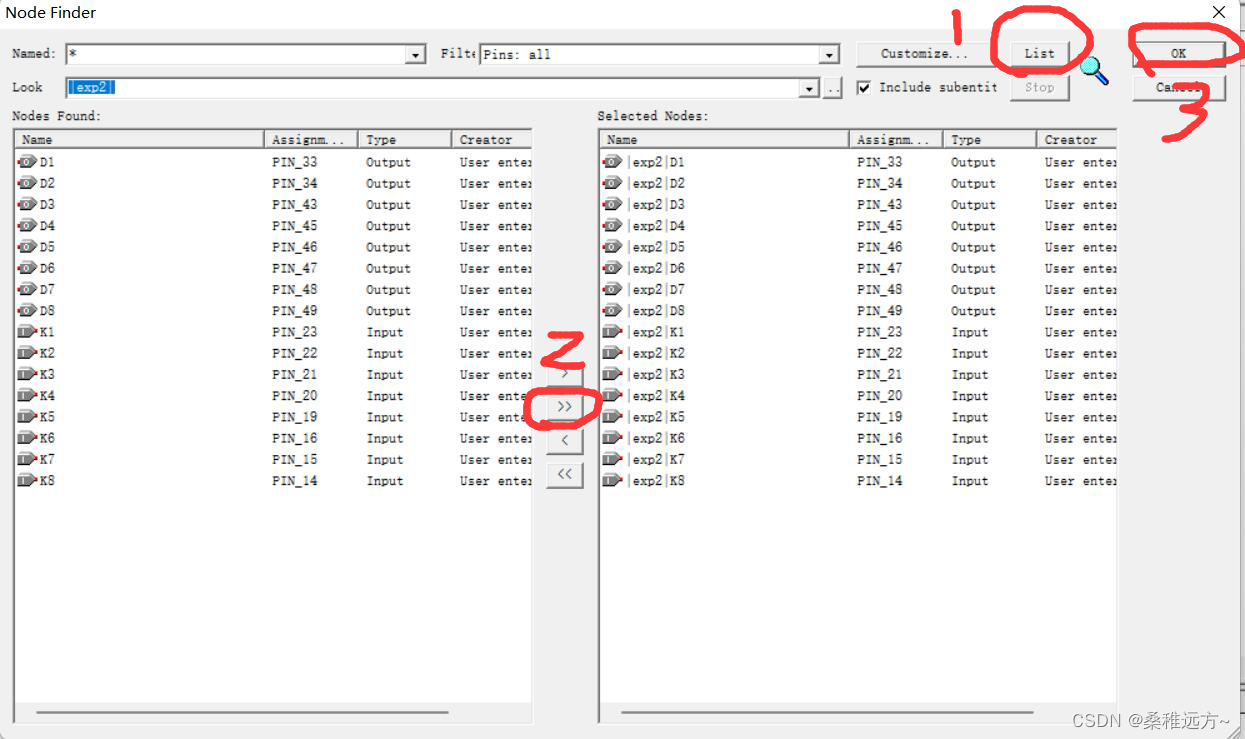 3.使用导入管脚配置信息,作用和上一步一样,如果已经自己一个一个选择过就忽略这一步