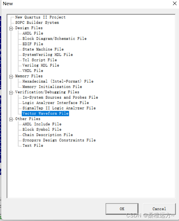 (1)新建一个VWF仿真文件,file>>new>>Vector Wavefrom File 文件,ok 即可