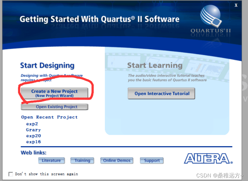 (1)打开quartus软件,推荐32位,如果64位也可以过程一致,由于我的系统和该软件不一致,所以使用30天,创建一个新项目