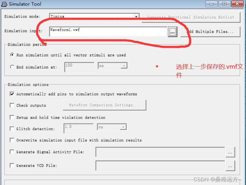 (4).在仿真工具中选择保存位置中的vmf文件,这样就会在运行中使用它