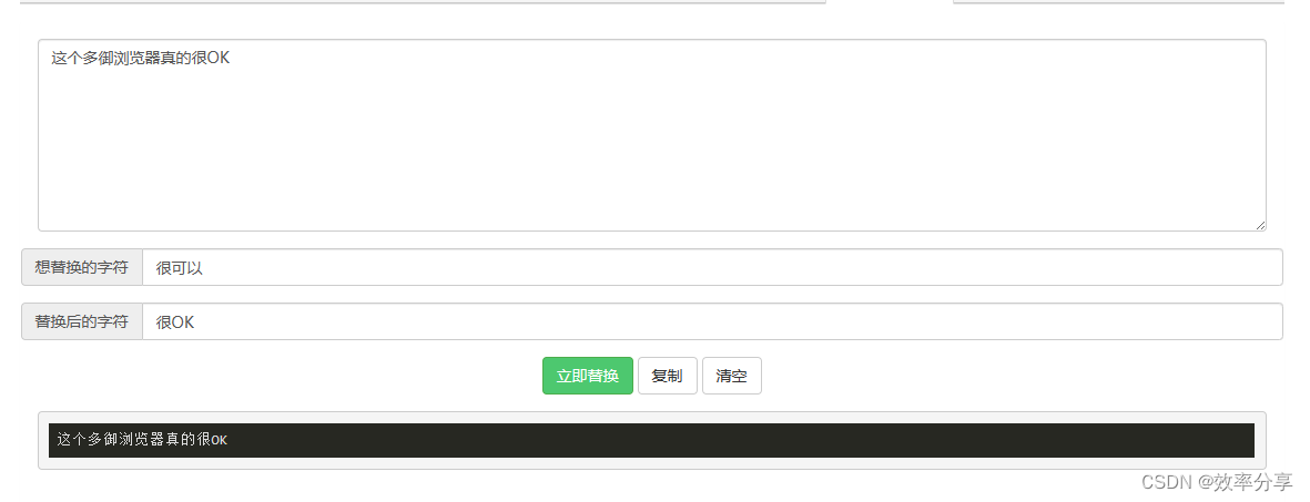 步骤二:根据指示完成替换后,内容会在下方的黑文本框出现