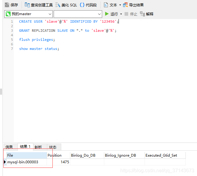 2.查看你的 master 的日志文件是否产生变化,比如原来是 mysql-bin.000003,重启后可能变为 mysql-bin.000004 了