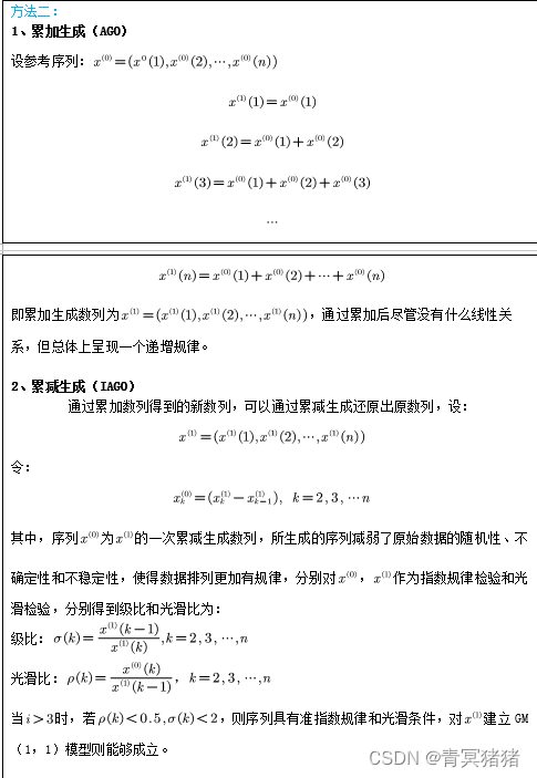 核心思想:灰色预测是一种对含有不确定因素的系统进行预测的方法。灰色预测通过鉴别系统因素之间发展趋势的相异程度,即进行关联分析,并对原始数据进行生成处理来寻找系统变动的规律,生成有较强规律性的数据序列,然后建立相应的微分方程模型,从而预测事物未来发展趋势的状况。其用等时距观测到的反映预测对象特征的一系列数量值构造灰色预测模型,预测未来某一时刻的特征量,或达到某一特征量的时间。