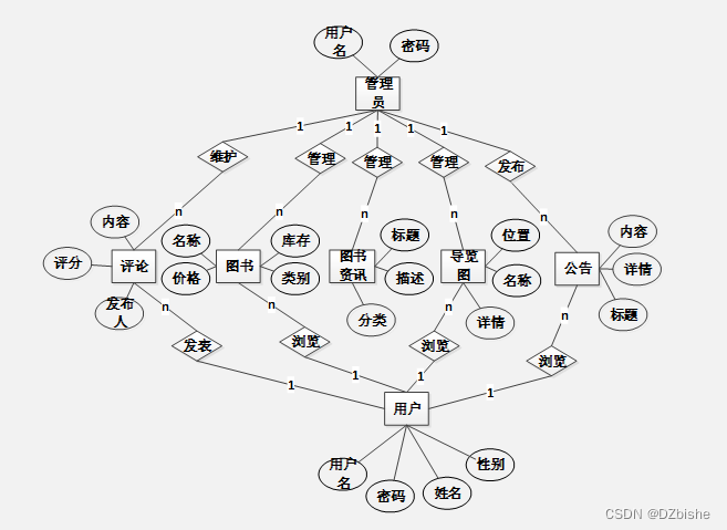 (1) 长沙县图书馆图书导览系管理整体E-R图,如图4-3所示: