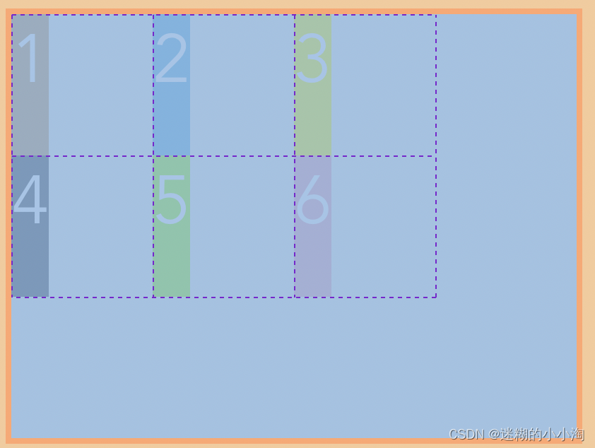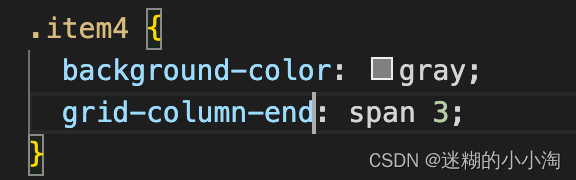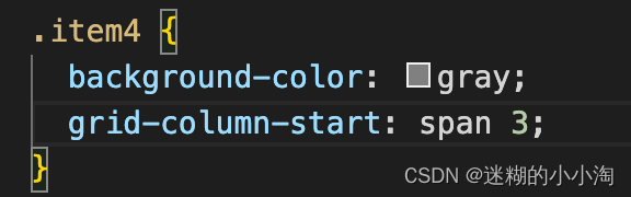 grid-column-start::span 2 表示从子元素起始列网格线跨越两条网格线距离;