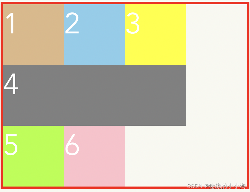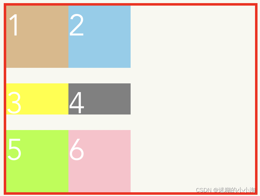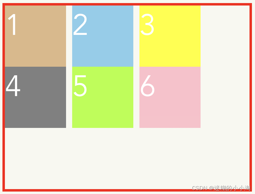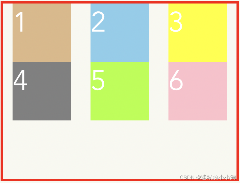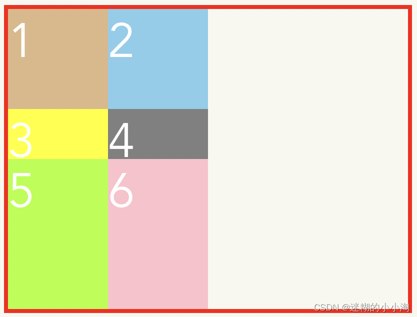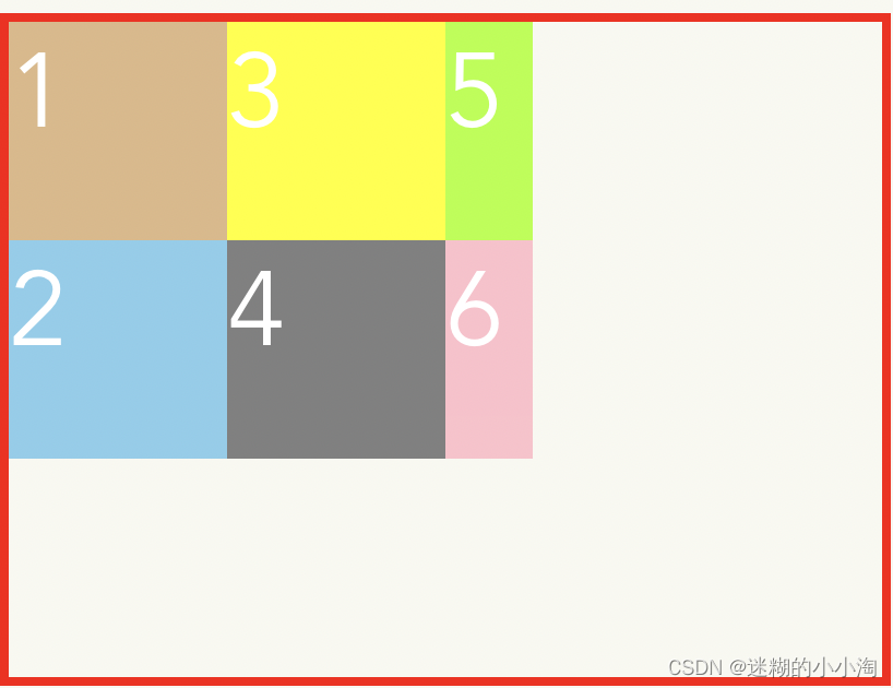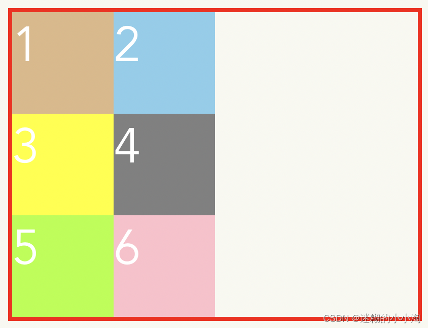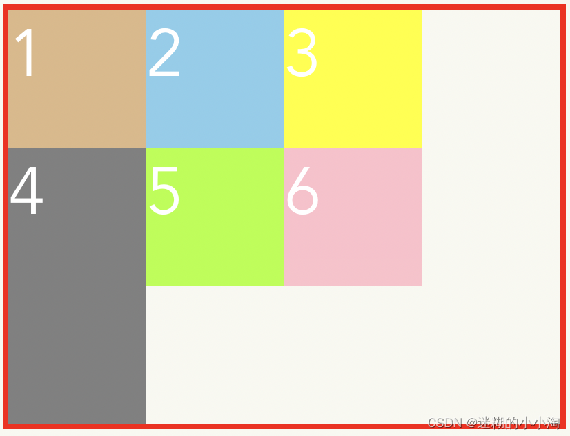 ![]() | 设置为2行2列,排不下的就会用auto形式,自动根据父元素大小进行排列