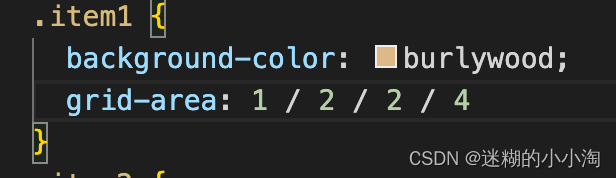 grid-area还可以用作grid-row-start/grid-column-start/grid-row-end/grid-column-end的合并形式,用于直接指定子元素的具体位置: