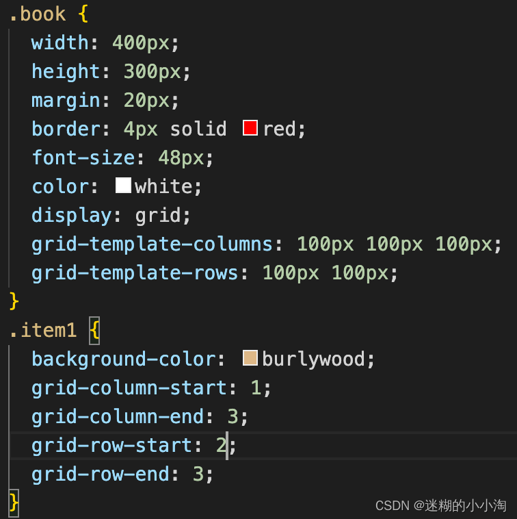 grid-row-start和grid-row-end用于指定子元素的开始/结束于哪条行网格线,确定子元素的具体位置;(前面讲网格线的时候也见过~)
