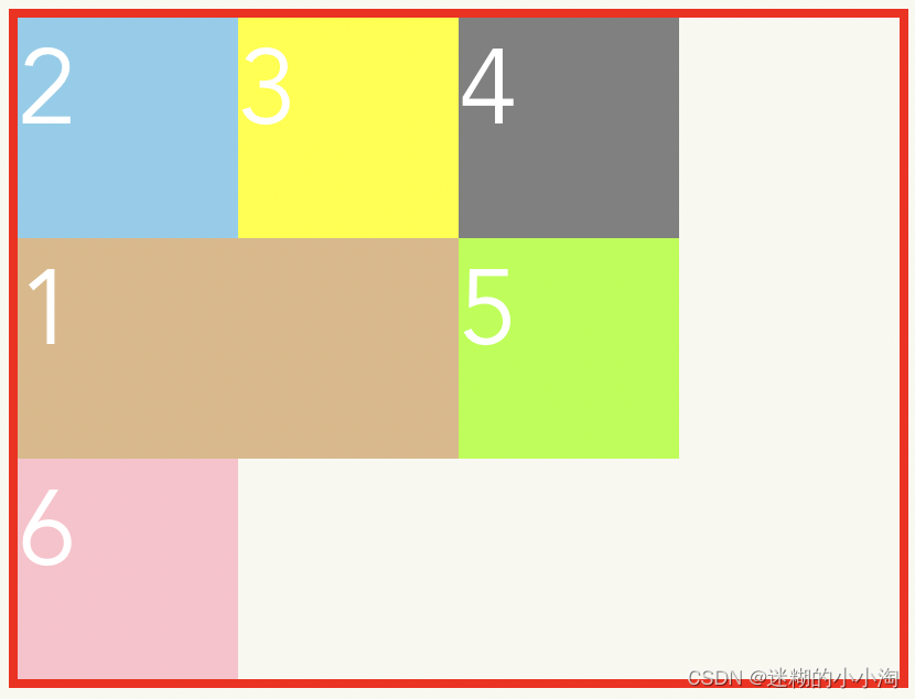 - grid-auto-flow:设置子元素的排放顺序,默认是“先行后列”