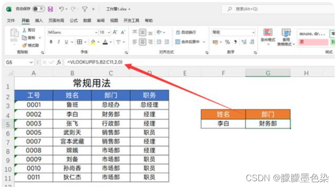 含有李白的姓名列一定要是被查找区域中的第一列!