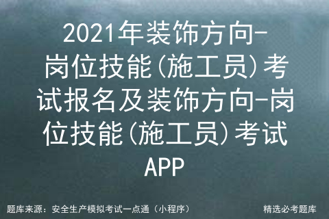 以上是2021年装饰方向-岗位技能(施工员)考试报名及装饰方向-岗位技能(施工员)考试APP。支持全国各地区精准装饰方向-岗位技能考试试题,支持安全资格证,特种作业操作证,职业技能鉴定等工种题库练习。