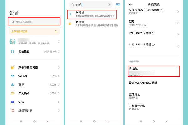 2.或者直接进入手机设置,在顶部搜索框输入“IP地址”,找到全部参数的“IP地址”进入查看。