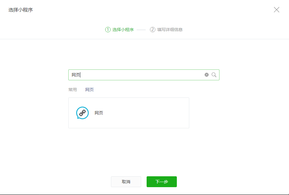 2、搜索小程序:“网页”,并点击“下一步”。