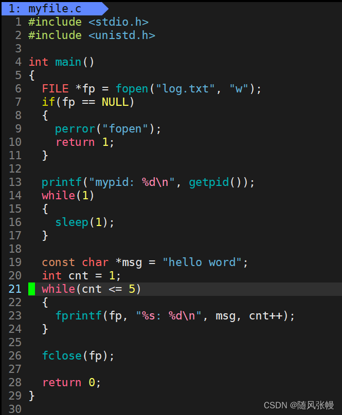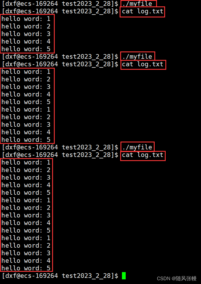 创建一个myfile.c文件写入下图一所示的代码,创建一个makefile文件写入下图二所示的代码。使用make命令生成可执行程序,然后使用./myfile执行该程序,如下图三所示,log.txt文件中原本的内容如下图四所示,写入后的内容如下图五所示。